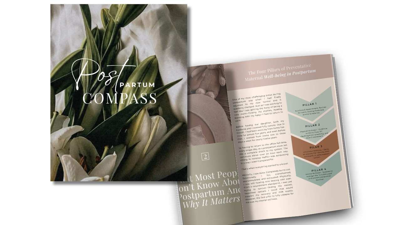 As any mother will tell you, having a plan is very different from navigating the reality of 2:00 AM feedings, hormonal shifts, and the heavy "invisible load" of new motherhood. Introducing: The Postpartum Compass. Here's what's inside... The Four Pillars of Preventative Wellness: Deep dives into Nutrition, Physical Recovery, Emotional Support, and Mental Clarity . A Roadmap for Physical Healing: Guidance on Pelvic Floor PT, "Zone 2" movement, and why "bouncing back" is a myth we’re unlearning . Global Wisdom for Modern Moms: Healing practices inspired by cultures worldwide from Moroccan rituals to Nigerian pepper soups, to help you create your own "village" . A Burnout Prevention Toolkit: Practical ways to manage the "invisible load" and identify the signs of burnout before you hit a wall . Provider Checklists: Exactly what to ask your doctor at your 2-week and 6-week appointments so you can advocate for the care you deserve .